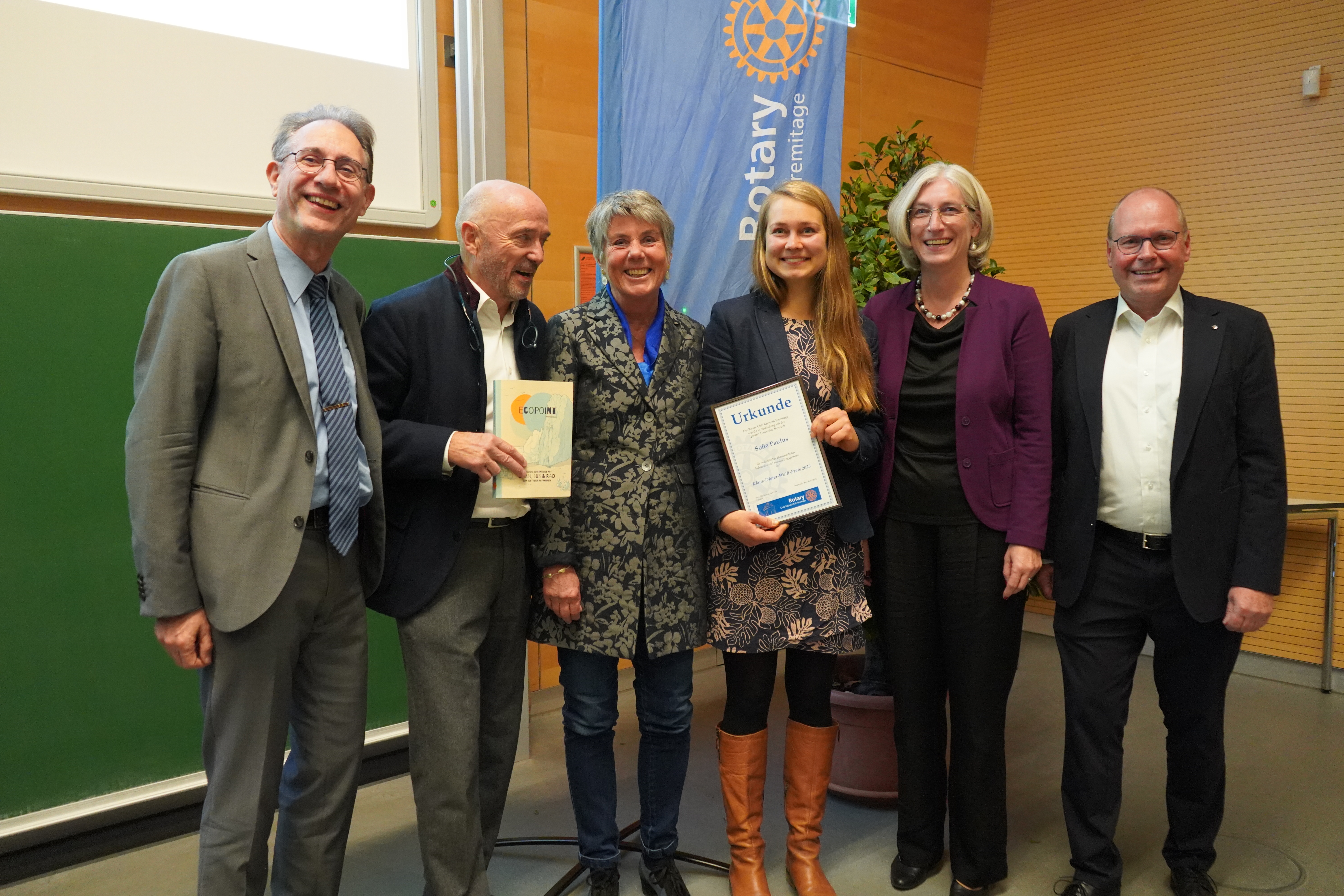 Die Verleihung fand im Rahmen der Rotary Lecture an der Universität Bayreuth statt. Vor rund 150 Gästen aus Wissenschaft, Wirtschaft und Gesellschaft betonte Rotary-Präsident Prof. Dr. Martin Leschke die Bedeutung des Preises als Zeichen gelebter Verantwortung. In seiner Laudatio hob Prof. Dr. Ralf Moos hervor, dass Sofie Paulus „wissenschaftliche Exzellenz mit außergewöhnlichem Engagement für Nachhaltigkeit“ verbinde und weit über die Universität hinauswirke.